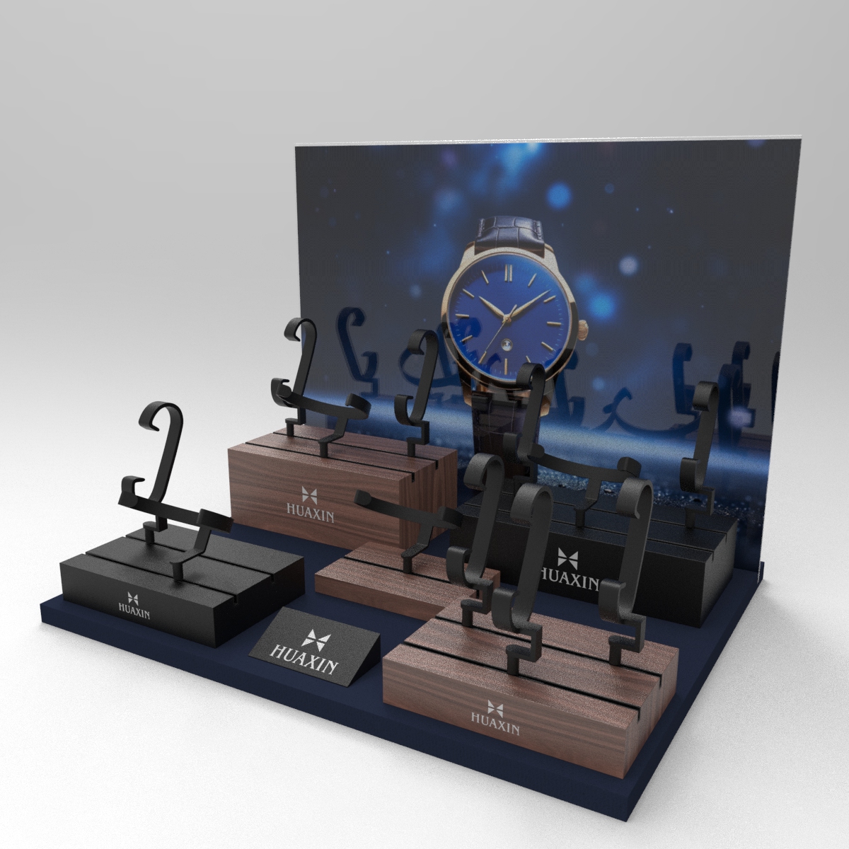 send us all about the details about the display you need like size, surface treatment ( matte or glossy), logo craft( metal logo, silk-screen printing, gold/silver foil ), quantity , and it's better send us the images about which watch display you are interesting.